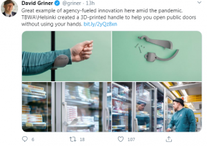 Për të shmangur kontaktet direkte me dyert publike, siç janë ato nepër dyqane apo edhe vende të tjera, në Helsinki të Finlandës është zbuluar një dorëz kreative nga kompania Adweek.