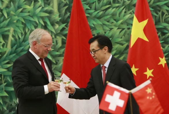 Me rastin e vizitës së shefit të qeverisë kineze në Bern, Le Keqiang, nuk pati mjaftuar, por tash Marrëveshje për Tregti të Lirë mes Zvicrës dhe Kinës u nënshkrua definitivisht. Në mëngjesin e vonë të së shtunës anëtari i Këshillit Federativ, Johann Schneider – Amann, dhe ministri i tregtisë i Kinës, Gao Hucheng, në Ministrinë e Tregtisë në Peking, para një muri të stolisur me gjethe bambusi, përmes nënshkrimeve të tyre vunë në lëvizja procesin e ratifikimit politik të marrëveshjes. Prania e më se tridhjetë përfaqësuesve ekonomikë të pranishëm në sallë, të udhëhequr nga kryetari i Economiesuisse, Rudol Wehrli,shprehte interesimin e ekonomisë zvicerane për marrëveshjen. Shumica prej tyre kishin ardhur enkas për këtë ditë në Pekin. Ata dhe anätarët e delegacionit qeveritar uruan për nënshkrimin me ngritje gotash shmpanje.