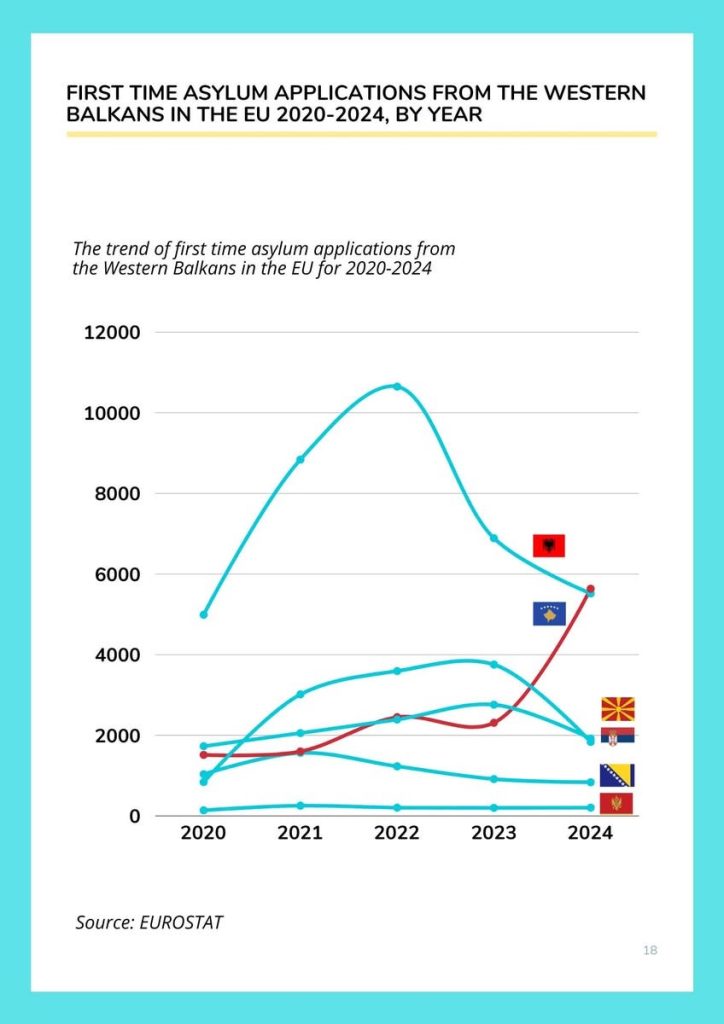 Ndërkohë, vetëm Mali i Zi dhe Bosnja dhe Hercegovina kanë arritur të mbajnë rritjen e numrit të azilkërkuesve nën nivelin 100%.