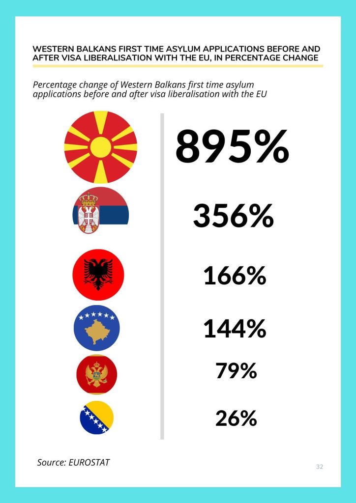 Të dhënat tregojnë se gjatë vitit të parë pas liberalizimit të vizave është regjistruar një rritje prej 144% e numrit të azilkërkuesve nga Kosova. Megjithatë, kjo rritje vlerësohet si e përkohshme dhe brenda parashikimeve të institucioneve dhe organizatave që monitorojnë lëvizjet migratore.