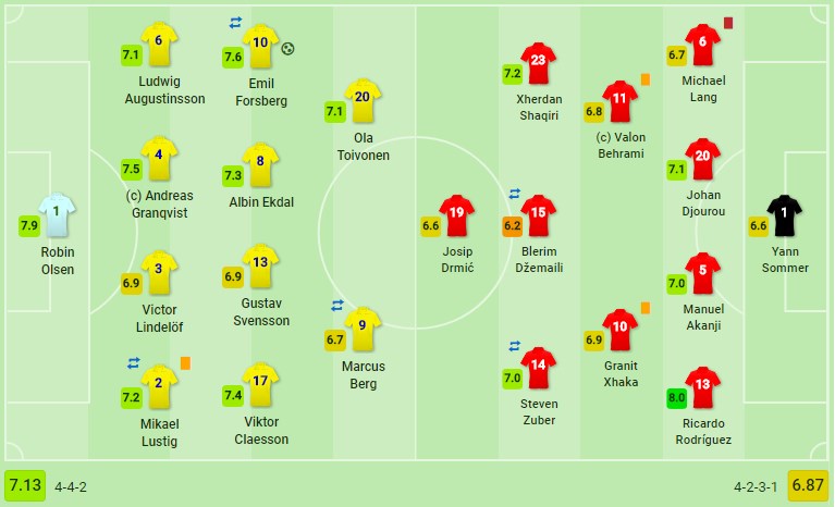 Notat e ndeshjes Suedi-Zvicër
