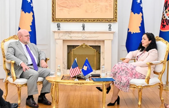 Presidentja Vjosa Osmani ka pritur dje në takim të rregullt ambasadorin e Shteteve të Bashkuara të Amerikës, Jeffrey Hovenier, përcjell albinfo.ch.