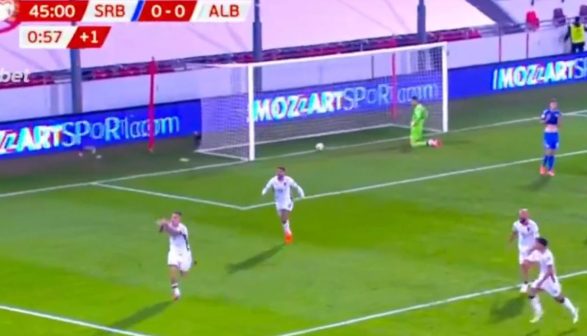 Në minutën e fundit të pjesës së parë të ndeshjes, Shqipëria ka arritur të kalojë në epërsi ndaj Serbisë. Rei Manaj ka arritur të bëjë ndryshimin duke shënuar një gol të mrekullueshëm në portën serbe.