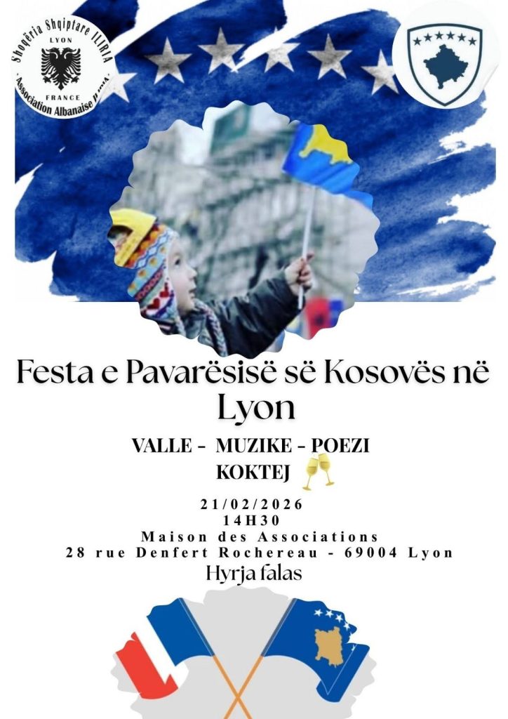 Shoqëria Shqiptare “Iliria” në Lyon, në bashkëpunim me Ambasadën e Republikës së Kosovës në Paris dhe Konsullin e Nderit të Kosovës në Lyon, Roger Forneris, do të organizojë një aktivitet festiv me rastin e Pavarësisë së Kosovës, transmeton albinfo.ch.