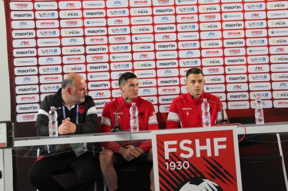 Kombëtarja shqiptare ka mbajtur pasditen e sotme  konferencën e parë për media që prej ardhjes, dy ditë më parë në vendgrumbullimin e saj në Perros Guirec.