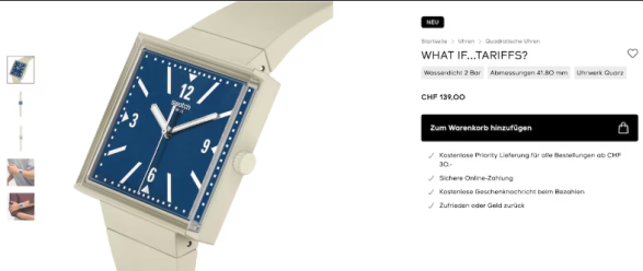 Swatch e ka vendosur çmimin e kësaj ore në 139 franga zvicerane, edhe ky një detaj me ngarkesë simbolike që lidhet me temën e tarifave.