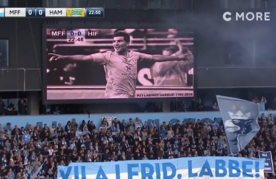 - Minuta e 23-të, të gjithë tifozët e Malmos nderojnë Labinot Harbuzin