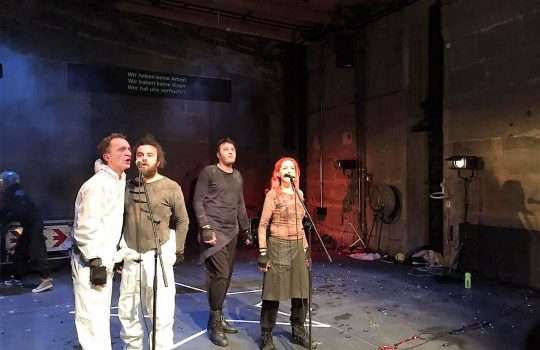 - Pasqyrë tragjikomike e realitetit kosovar në teatrin e Bernës“Një shfaqje teatri me 4 aktorë, me disa derra, me disa...