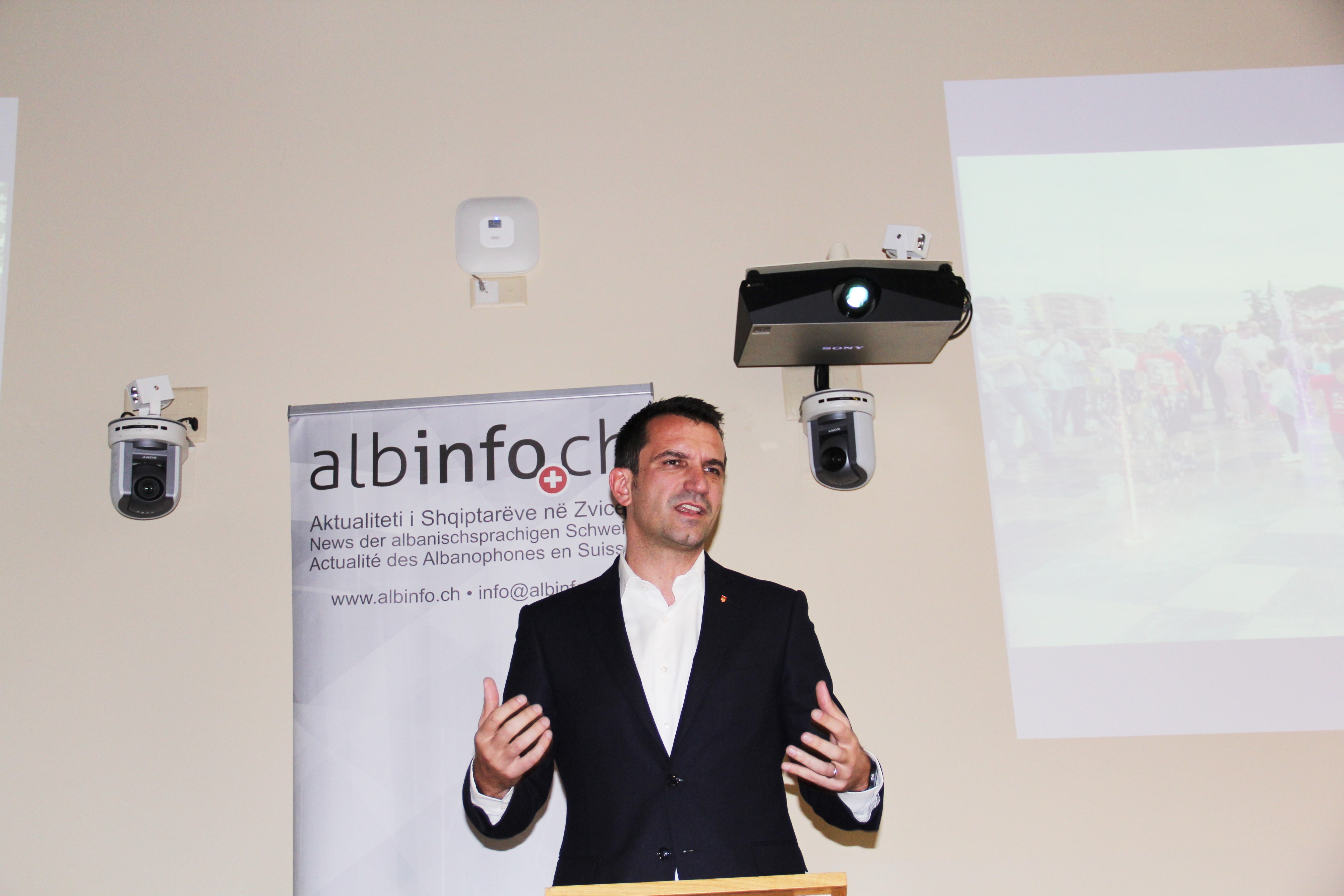 Me një fjalë përshëndetjeje, publikut i është drejtuar edhe kryetari i platformës albinfo.ch, politikani i shquar zviceran, Andreas Gross. Edhe ai, si njohës i thellë i realitetit në Ballkan dhe si mik i shqiptarëve, në fjalën e tij ka vënë theksin në rolin model që ka Erjon Veliaj si kryebashkiak në rajon e më gjerë. Prandaj një model i tillë ia vlen të afirmohet dhe të ndiqet.