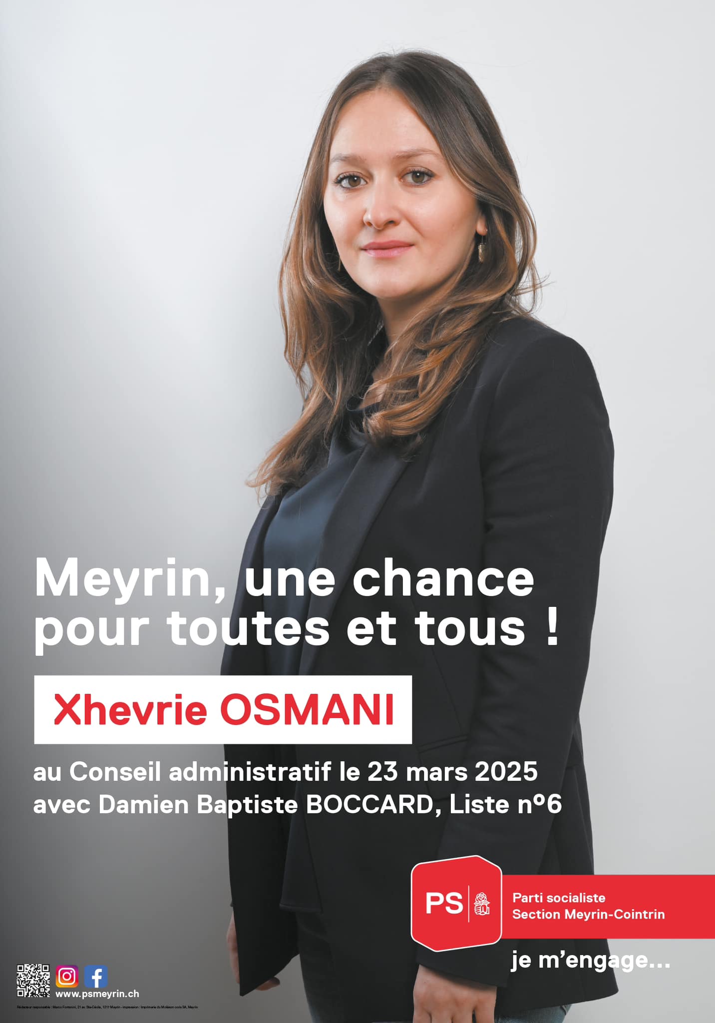 Përfaqësuesja rozë-gjelbër (PS – Verte) Xhevrie Osmani kryeson me lehtësi raundin e parë të zgjedhjeve për Këshillin Administrativ të komunës Meyrin, të Kantonit të Gjenevës, shkruan SDA/ATS. Deputetja lokale pasohet nga centristi Laurent Tremblet, kandidat në largim. Kandidati i Gjelbër Damien Boccard e mbetet në pozitën e tretë përcjell albinfo.ch.