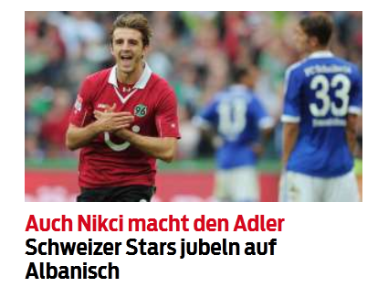 Nikçi nuk është i pari shqiptar me pasaportë zvicerane që feston golin me shqiponjë, shkruan “Blick”. Edhe Pajtim Kasami e bëri të njëjtën në dhjetor 2010. “Ishte një përshëndetje për bashkëkombësit e mi”, kishte thënë Kasami, familja e të cilit vjen nga Struga e Maqedonisë.