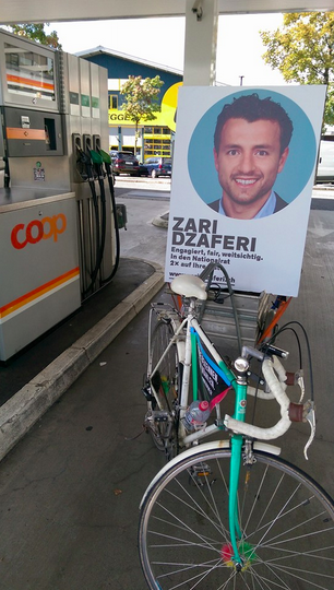 „Me biçikleten time me poster jam shumë aktiv në rrugët e Zugut. Unë shpërndaj fletushka, bisedoj me njerëz dhe e them mendimin tim. Në të njëjtën kohë unë jam shumë i aktiv në media. Unë jam për këtë arsye i bindur se fushata ime është interesante dhe e pranueshme për të gjithë. Kjo fushatë gjithashtu ofron perspektiva për të shprehur programin tim më mirë për qytetarët”, thotë Xhaferi, i cili e konsideron të jetë senzacion nëse siguron një ulëse në Parlamentin e Zvicrës.